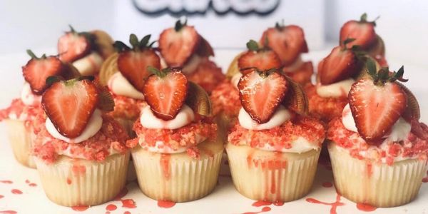 I am a self taught baker who is now fluent in wedding cakes, cupcakes, cake pops and custom cakes for any occasion. All ingredients, including the fresh strawberries for our fan favorite strawberry crunch cupcakes, are always locally sourced. Whether you are vegan, celebrating a huge achievement, a birthday, or simply just want some damn good cake I’m your girl!